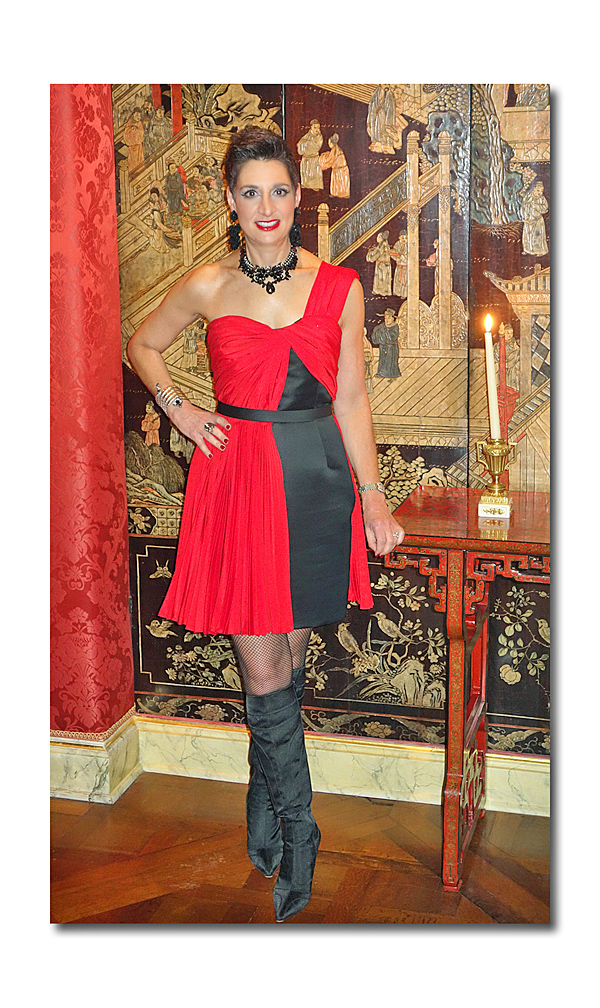 Back to the fashion on display, I would crown Designer Victor dE Souza king for his amazing tiered, beaded and embroidered woodland inspired gown and brocade cape ensemble, worn beautifully by Tanja Dreiding Wallace who says she owns about 12 of Victor’s amazing creations. He recently made the most incredible crystal embellished mask/headdress for the Save Venice gala last Friday night, which was also worn to perfection by Ms. Shafiroff. The extra tall plume at the top not only gave her stature but, according to the designer, special wire had to be sourced at the hardware store in order to lend support to the feather, reminding me of the “Unconventional Materials” challenges on Project Runway.